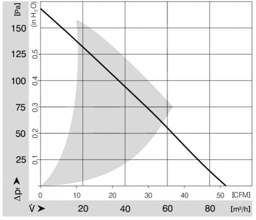 Под воздействием центробежной силы компактный вентилятор RG 125-19/12 NM перемещает поток воздуха на значительные расстояния, и далее направляет его в нагнетательное отверстие.
