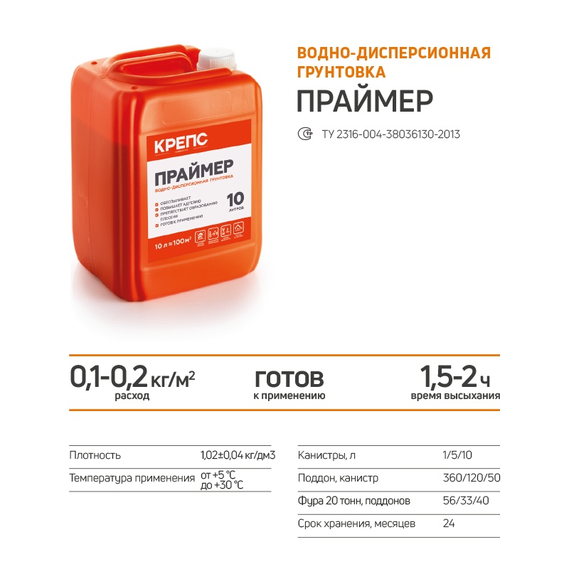 Праймер Крепс – готовый к применению грунтовочный состав белого цвета для внутренних и наружных работ. Идеален для обработки бетона, газобетона, кирпича и цементных оснований.