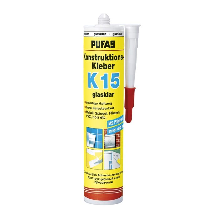 Pufas K15 прозрачный конструкционный клей (0,29 л) – надежный помощник в строительстве и ремонте! Этот клей, словно хамелеон, идеально подходит для внутренних и наружных работ, будь то керамическая плитка, дерево или металл. Эластичный, как пантера, он обеспечивает прочное сцепление даже с такими материалами, как гипсокартон, ПВХ и зеркала.