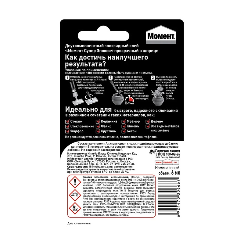 Главная страница » Магазин » Клей Момент Супер Эпокси прозрачный, шприц на блистер-карте (6 мл)