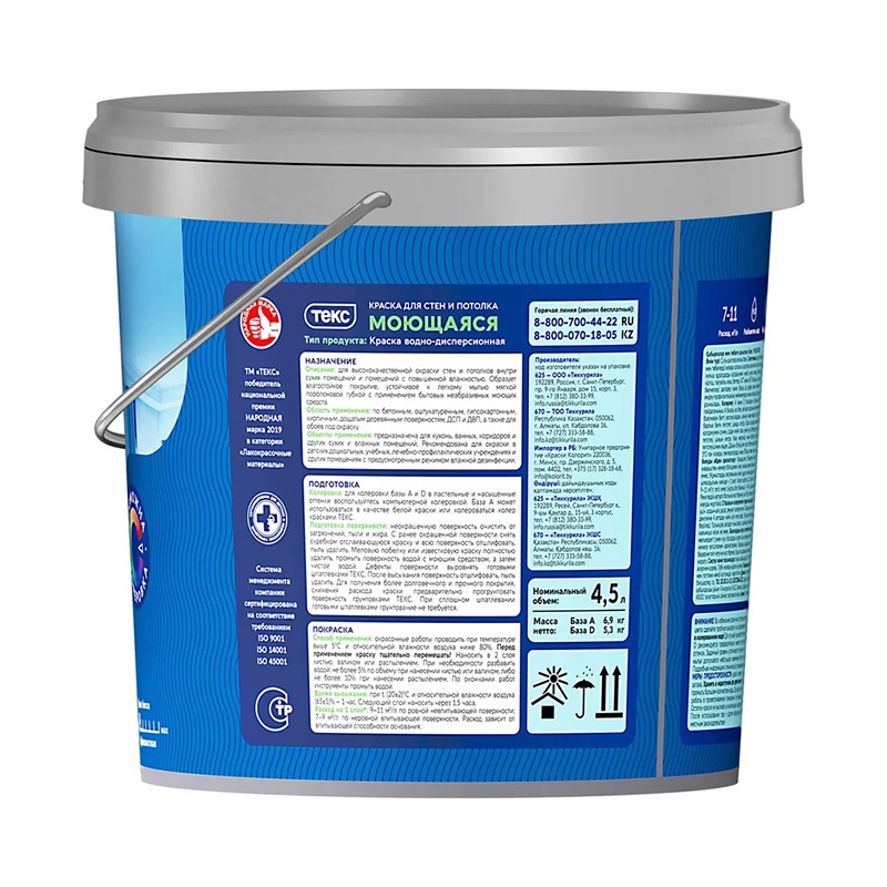 Главная страница » Магазин » Краска в/д моющаяся Текс Профи основа А (4,5 л)