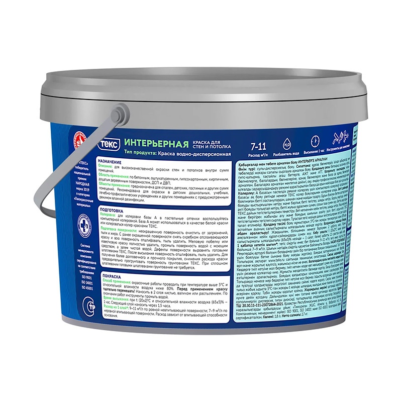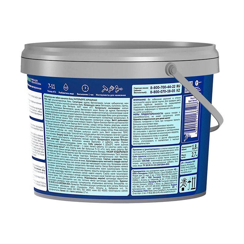 Краска легко наносится, образуя ровное, матовое покрытие, скрывающее мелкие дефекты поверхности. Идеально подходит для окрашивания стен и потолков в жилых и офисных помещениях.