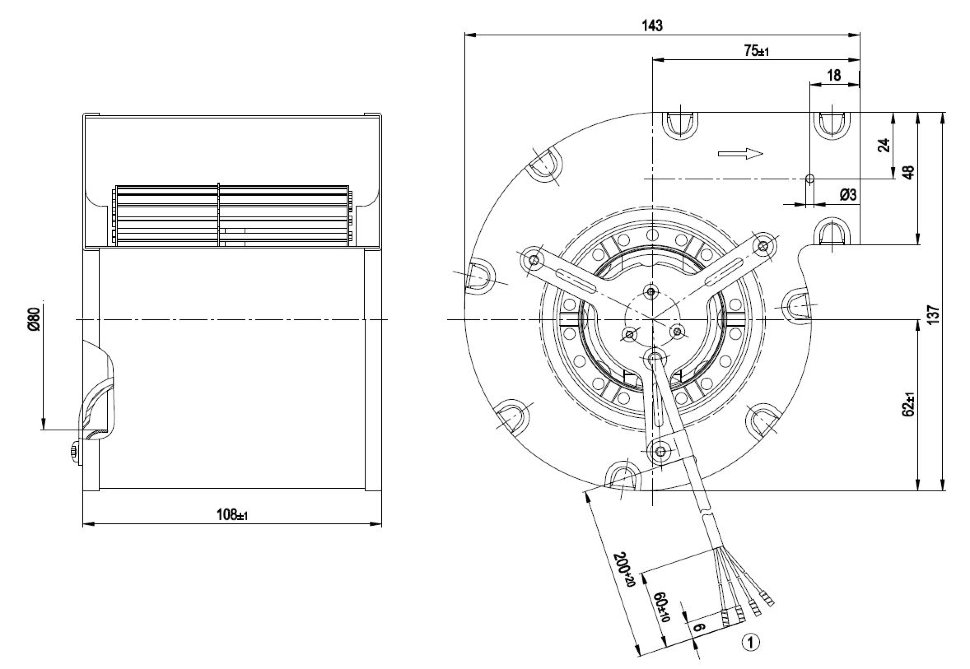 Конструкция радиального вентилятора D2E097-CH85-02 Ebmpapst