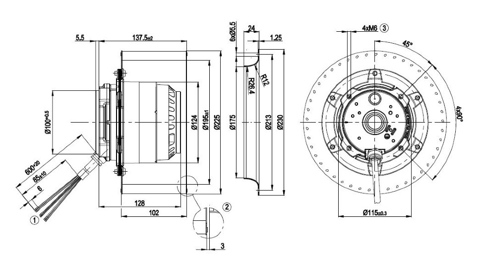 Конструкция радиального вентилятора R4E225-BK05-03 Ebmpapst