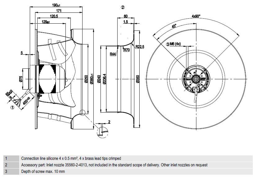 Конструкция радиального вентилятора R4E355-AL02-05 Ebmpapst