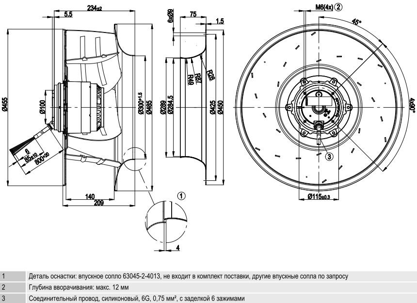 Конструкция радиального вентилятора R4E450-AK01-01 Ebmpapst