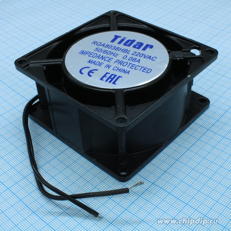 Вентилятор 220В AC, 2600об/мин., 80×80х38мм, 23л/мин, 26дБ, подшипник качения, тип вывода — провод