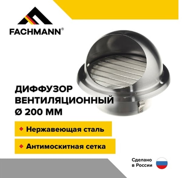 Главная страница » Магазин » 8049552844 Выход стенной вентиляционный 200 мм металлический диффузор с решеткой и сеткой нержавеющая сталь 10.026 Hirschmann