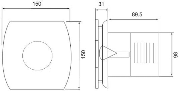 Осевой, вытяжной вентилятор, потолочный, настенный, 15 Вт, диаметр воздуходува 9.8 см, производительность 98 куб.м/ч, кнопка/Выключатель света, обратный клапан.
