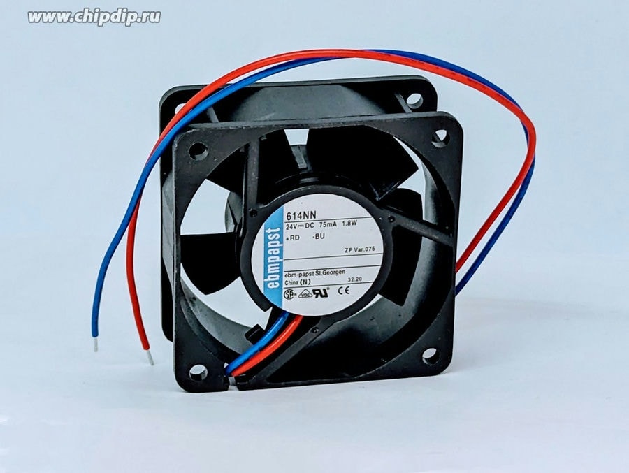 Описание Осевой вентилятор EBM-PAPST с кодом 614NN – идеальное решение для охлаждения ваших девайсов. Он имеет воздушный поток 42 куб.м/ч, диаметр 60 мм, толщину 25 мм и материал корпуса из пластика. Тип подшипника – качения, уровень шума – 35 дБА. Тип тока – DC, номинальное напряжение питания – 24 В, мин. пусковое напряжение – 18 В, макс. рабочее напряжение – 28 В, потребляемая мощность – 1,8 Вт, скорость вращения – 5 100 об/мин, длина провода – 310 мм. Выводы – 2 провода. Материал крыльчатки – пластик. Осевой вентилятор EBM-PAPST с кодом 614NN – идеальное решение для охлаждения ваших девайсов. Он имеет воздушный поток 42 куб.м/ч, диаметр 60 мм, толщину 25 мм и материал корпуса из пластика. Тип подшипника – качения, уровень шума – 35 дБА. Тип тока – DC, номинальное напряжение питания – 24 В, мин. пусковое напряжение – 18 В, макс. рабочее напряжение – 28 В, потребляемая мощность – 1,8 Вт, скорость вращения – 5 100 об/мин, длина провода – 310 мм. Выводы – 2 провода. Материал крыльчатки – пластик. Характеристики
