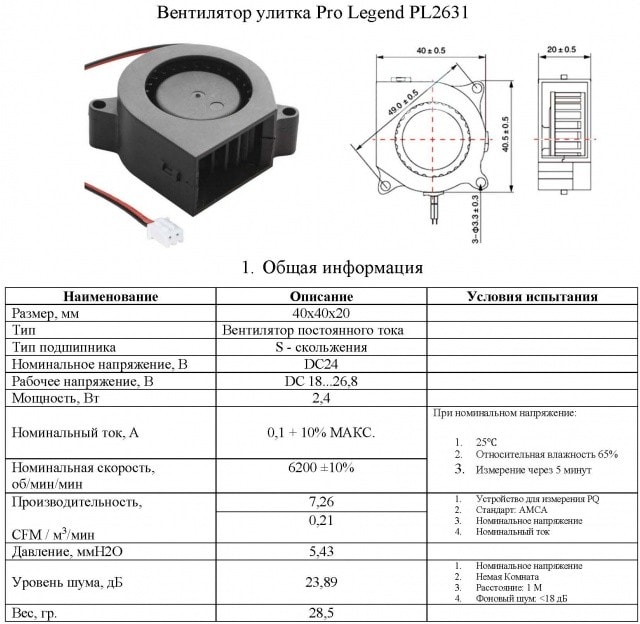 Вентилятор-улитка 40х40х20 мм, 6200 об./мин., 24 В — это высококачественный, недорогой вентилятор для охлаждения, как отдельных электронных компонентов, так и готовых устройств с повышенным тепловыделением. Ассортиментный ряд вентиляторов Pro Legend очень разнообразен. Маленькие вентиляторы имеют размеры от 25х25 мм и предназначены для локального охлаждения транзисторов, микросхем или иных узлов Самый большой размер 172х170 мм, может использоваться для охлаждения теплообменников промышленных установок. Широкий диапазон питающих напряжений (от 5В до 48В постоянного тока) позволяет встраивать вентиляторы в любые узлы, не применяя дополнительных источников питания. Практически все модели имеют варианты как с подшипником качения, так и с подшипником скольжения. Вентиляторы Pro Legend имеют нормированный, низкий уровень шума и отличаются высоким рабочим ресурсом и большим сроком наработки на отказ.