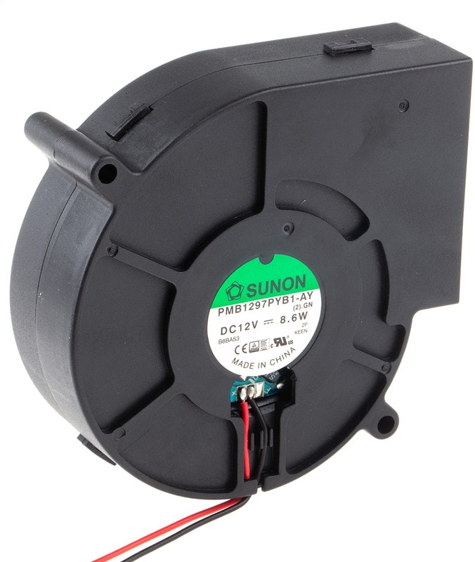 Описание Предлагаем вашему вниманию центробежный вентилятор SUNON PMB1297PYB1-AY. Он обеспечивает воздушный поток объемом 51,85 куб.м/ч и статическое давление 229 Па. Размеры вентилятора – 97 мм по длине, 94 мм по ширине и 33 мм по толщине. Уровень шума 55,8 дБА. Вентилятор работает от постоянного напряжения 12 В, пусковое напряжение – 6 В, максимальное рабочее напряжение – 13,8 В. Номинальный ток 0,72 А, потребляемая мощность 8,6 Вт. Вентилятор имеет бесколлекторный мотор с максимальной скоростью вращения до 3 600 об/мин. Для подключения используются 2 провода длиной 300 мм и диаметром 24AWG. Корпус вентилятора изготовлен из алюминия, а крыльчатка – из термопласта. Класс изоляции – B, сопротивление изоляции минимум 500 Мом. Рабочая температура от -10 до 70 °C. На вентилятор распространяется гарантия с автоматическим перезапуском и типом подшипника – качения. Предлагаем вашему вниманию центробежный вентилятор SUNON PMB1297PYB1-AY. Он обеспечивает воздушный поток объемом 51,85 куб.м/ч и статическое давление 229 Па. Размеры вентилятора – 97 мм по длине, 94 мм по ширине и 33 мм по толщине. Уровень шума 55,8 дБА. Вентилятор работает от постоянного напряжения 12 В, пусковое напряжение – 6 В, максимальное рабочее напряжение – 13,8 В. Номинальный ток 0,72 А, потребляемая мощность 8,6 Вт. Вентилятор имеет бесколлекторный мотор с максимальной скоростью вращения до 3 600 об/мин. Для подключения используются 2 провода длиной 300 мм и диаметром 24AWG. Корпус вентилятора изготовлен из алюминия, а крыльчатка – из термопласта. Класс изоляции – B, сопротивление изоляции минимум 500 Мом. Рабочая температура от -10 до 70 °C. На вентилятор распространяется гарантия с автоматическим перезапуском и типом подшипника – качения. Характеристики