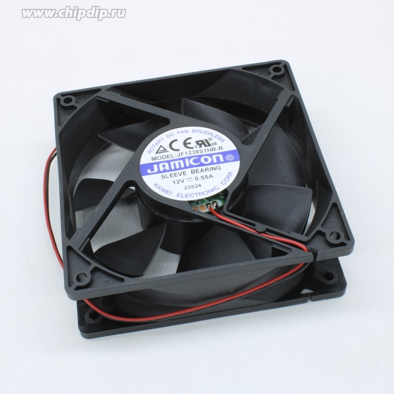 Вентилятор 12В DC 120х120×38мм, B 2800 об/мин, 38м3/мин, подшипник скольжения, тип вывода — провод с разъемом