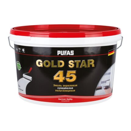 Эмаль акриловая супербелая Pufas Gold Star 45 полуглянцевая (9 л)